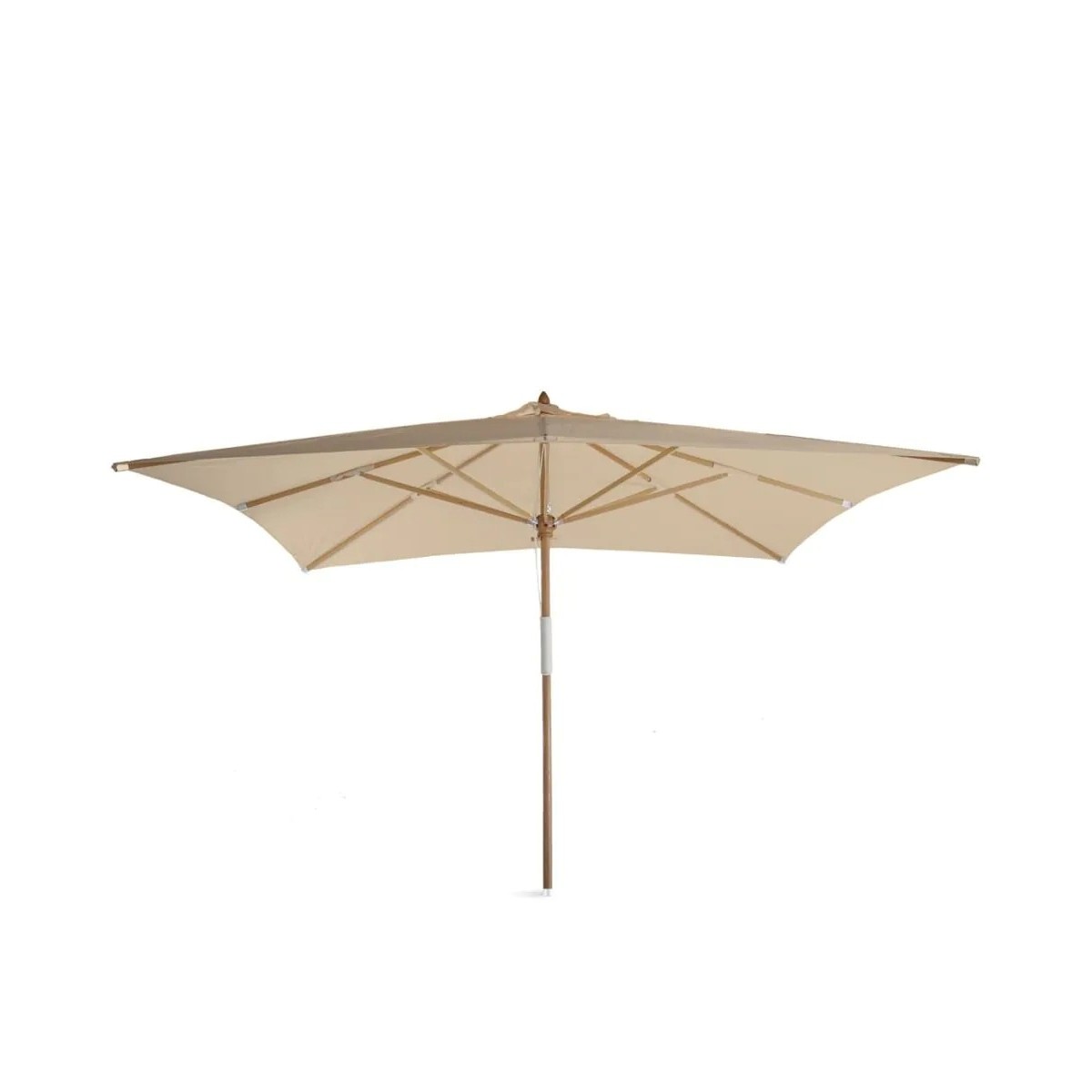 The structure of the sun umbrella is made from high-quality wood with a sturdy diameter of 6 cm, ensuring durability and stability. The canopy is crafted from 100% solution-dyed acrylic fabric, which is not only colorfast but also water-repellent and UV-resistant. This ensures that the umbrella remains in top condition even in changing weather conditions.