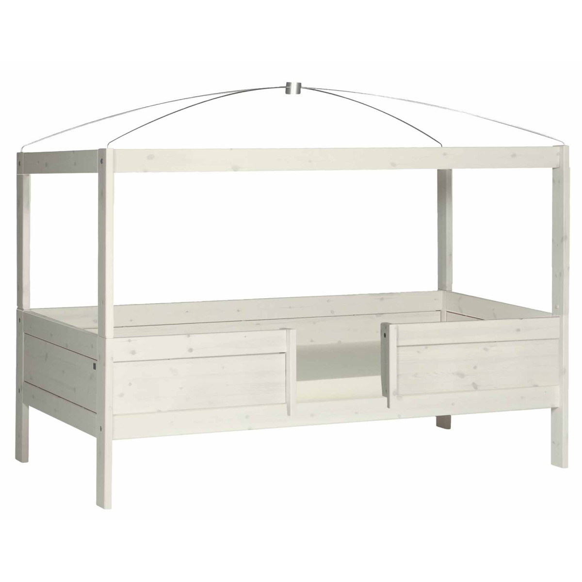 4-in-1 Lifetime Canopy Bed with Peach Canopy, 90x200 cm, including Deluxe Slatted Frame in Whitewash