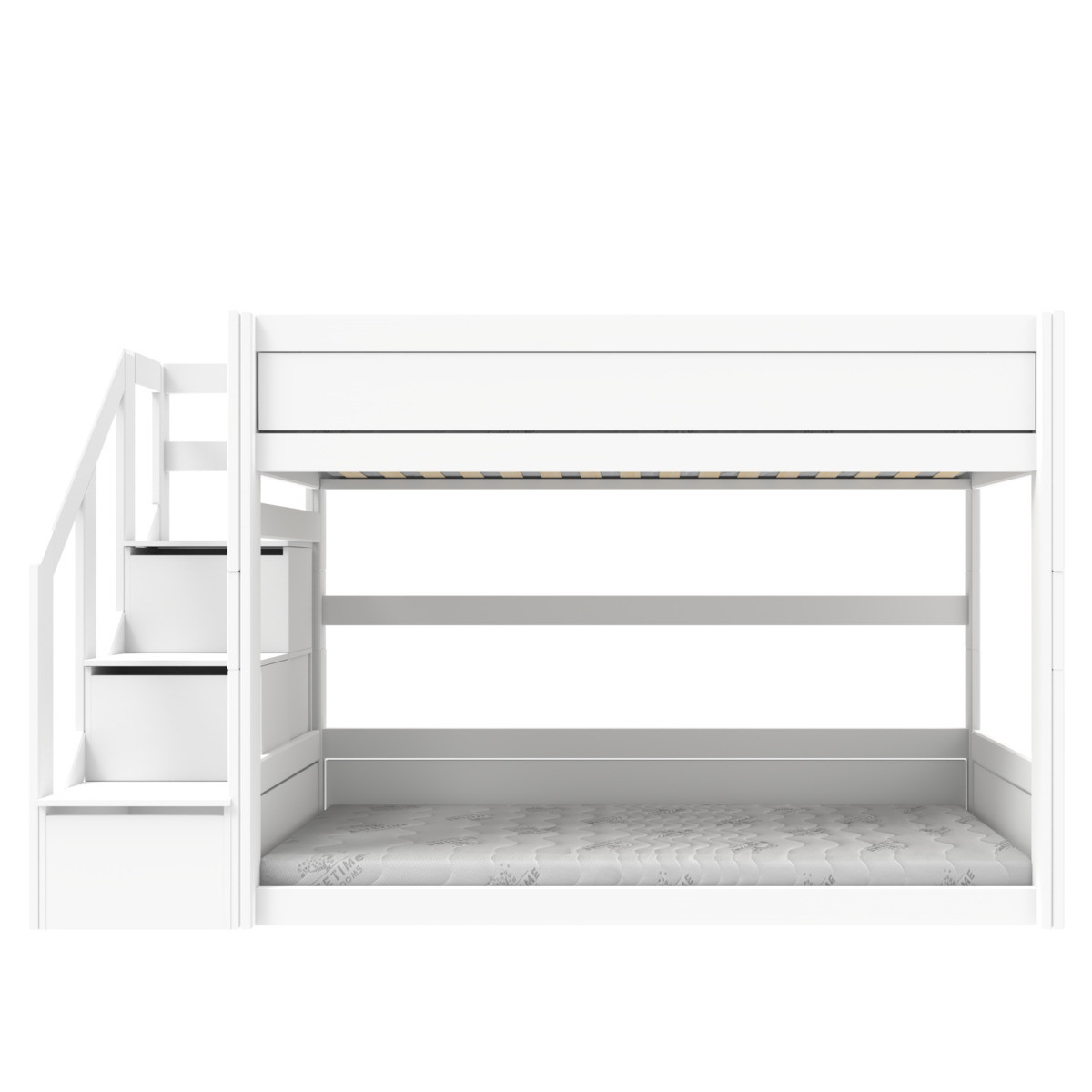 Lit superposé Lifetime à faible hauteur avec échelle, 90 x 200 cm, sommier à lattes Deluxe en blanc