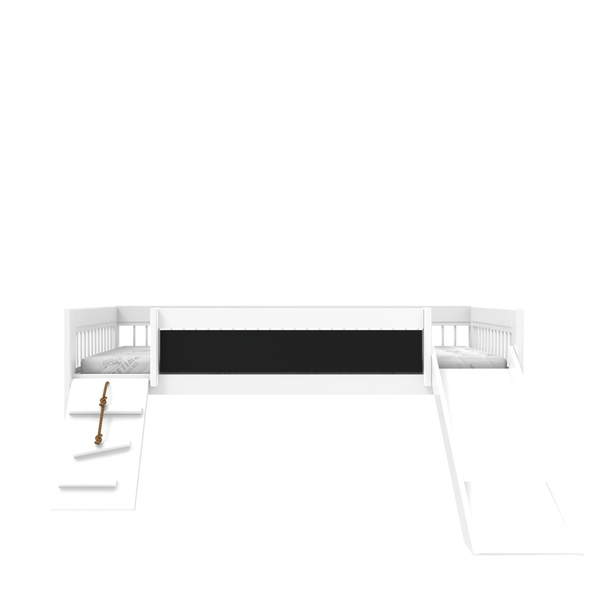 Il letto a castello con una pratica scala e uno scivolo entusiasma i bambini, permettendo loro di arrampicarsi su una corda a un'estremità del letto, fare una meritata pausa in cima e poi scivolare giù dall'altra estremità. Questo letto multifunzionale unisce le attività preferite dei bambini: arrampicarsi, scivolare e disegnare.